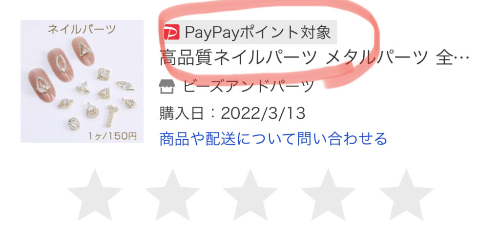 PayPayポイント対象商品は、商品リストに『PayPayポイント対象』と表示されますので、その商品のレビューを記入します。